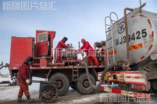 2023年1月31日,新疆油田公司采油二厂第五采油作业区,修井队队员进行洗井作业。
