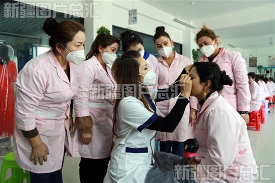 2023年2月2日,学员在阿瓦提县技工学校学习美容技艺。