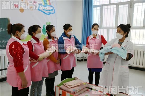 2023年2月2日,学员在阿瓦提县技工学校学习育儿护理技能。