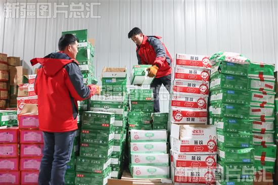 2023年?2月1日,商户在位于博乐市乌图布拉格镇格尼登新村的保鲜冷库里配送货物。