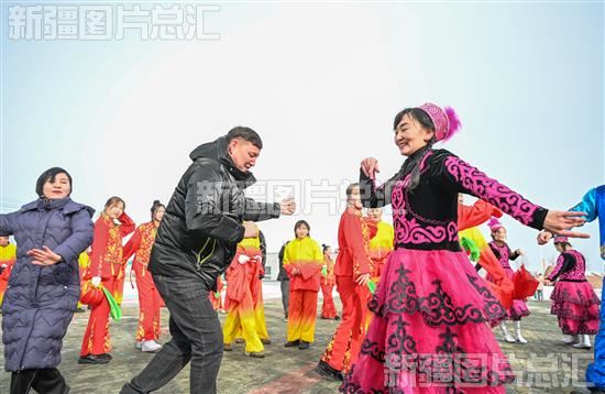 2023年2月4日,呼图壁县雀尔沟镇景化社区各族群众身着盛装跳起黑走马。