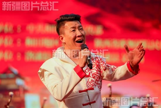 2023年2月5日,陕西省歌舞剧院民族乐团演员在洛浦县影剧院表演男声独唱《东方红》。
