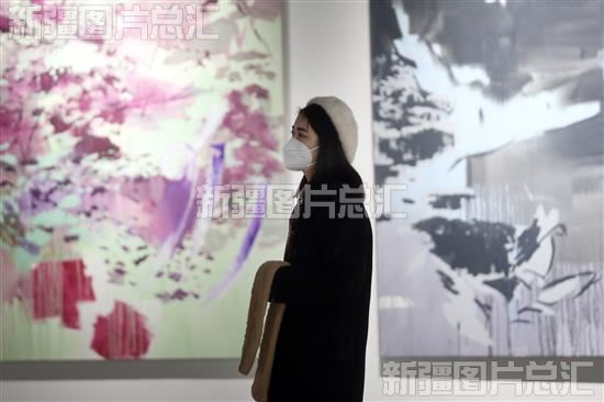 2023年2月8日,市民在新疆美术馆“第三届中国新疆国际艺术双年展”参观。