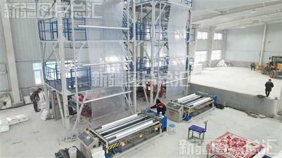 2023年2月8日,精河县阿合其农场兴晟塑业员工在加工地膜。