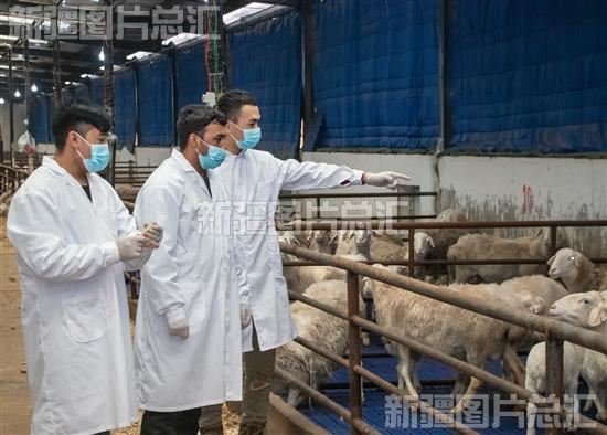 2023年2月8日,新疆雪峰奥群羊业发展有限公司技术人员观察“小羊羔”健康状况。