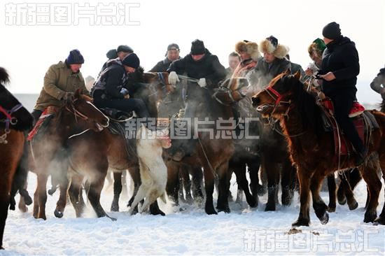 当日,昌吉市阿什里哈萨克乡努尔加村举行农牧民运动会,雪地刁羊、姑娘追、摔跤等传统民族体育运动吸引了众多游客前来观看。