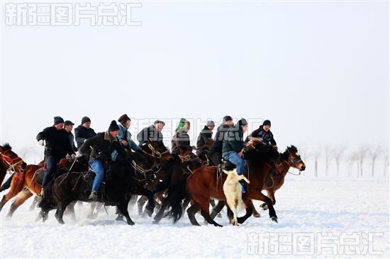 当日,昌吉市阿什里哈萨克乡努尔加村举行农牧民运动会,雪地刁羊、姑娘追、摔跤等传统民族体育运动吸引了众多游客前来观看。