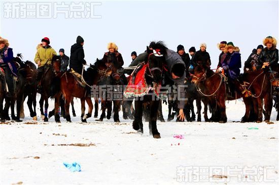 当日,昌吉市阿什里哈萨克乡努尔加村举行农牧民运动会,雪地刁羊、姑娘追、摔跤等传统民族体育运动吸引了众多游客前来观看。