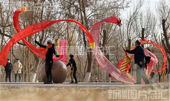 库尔勒市:全民健身--舞起“彩带龙” 不负好春光