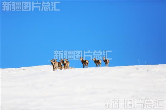 天山马鹿穿行雪岭