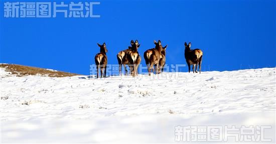 天山马鹿穿行雪岭