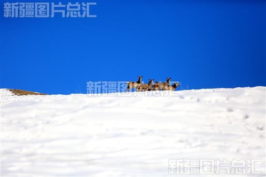 天山马鹿穿行雪岭