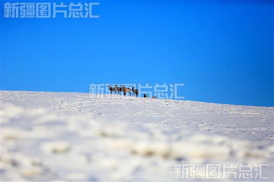 天山马鹿穿行雪岭
