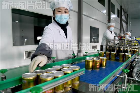2023年2月20日,位于精河县精河工业园区的新疆精杞神枸杞开发有限责任公司员工在车间生产枸杞产品。