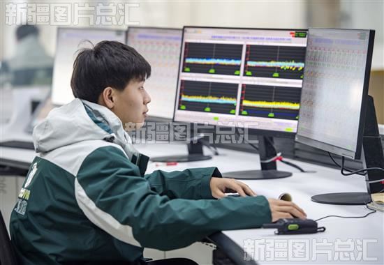 2023年2月15日,位于昌吉国家高新技术产业开发区的新疆诺威施农业科技有限公司车间,员工在中控室查看设备运行情况。