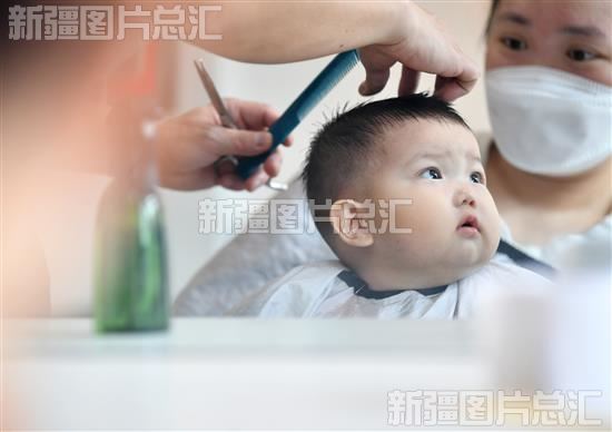 2月21日,小朋友在乌鲁木齐高新区(新市区)鲤鱼山北路的一家理发馆理发。石榴云/新疆日报记者 邹懿摄