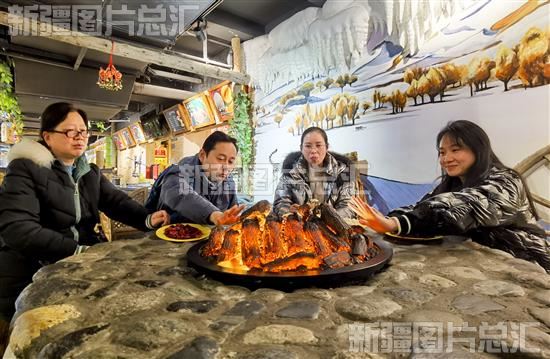 2023年2月23日,湖北游客在新疆国际大巴扎步行街水果巴扎尝品干果。