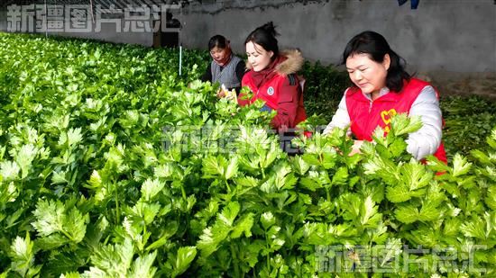 关键字:伊犁哈萨克自治州 伊犁州 察布查尔锡伯自治县 良繁场 农业 设施农业 蔬菜 种植基地 大棚蔬菜 大棚芹菜 丰收 菜农 村民 农民 收割 芹菜 增收