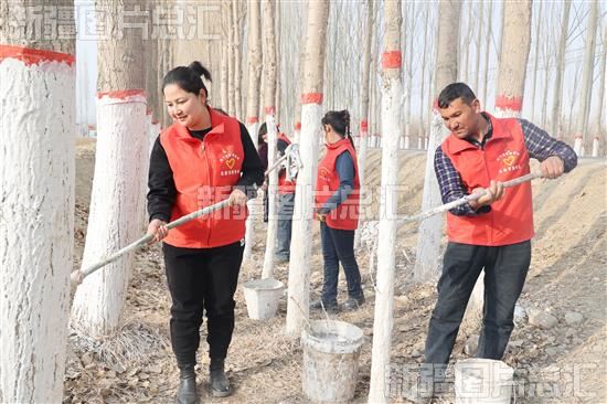 连日来,自治区党委组织部、老干部局驻托万克麦盖提村“访惠聚”工作队和村“两委”组织党员干部群众成立志愿服务队,为辖区路段防护林进行刷白工作,有效防止林木病虫毒害入侵。