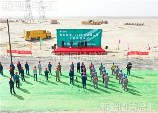 2023年3月14日,和田热点厂220千伏送出工程首基浇筑仪式现场。