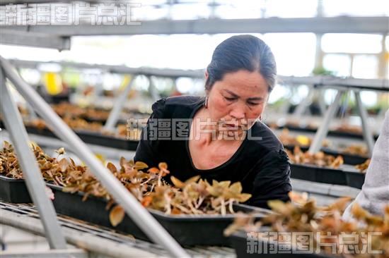 2023年3月5日,工人在温宿国家农业科技园区金线莲科研示范基地管护金线莲。