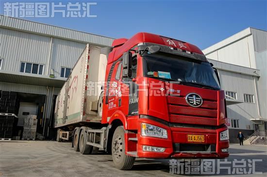 2023年3月5日,一辆汽车在阿克苏优能农业科技股份有限公司果品分选车间外装运苹果。