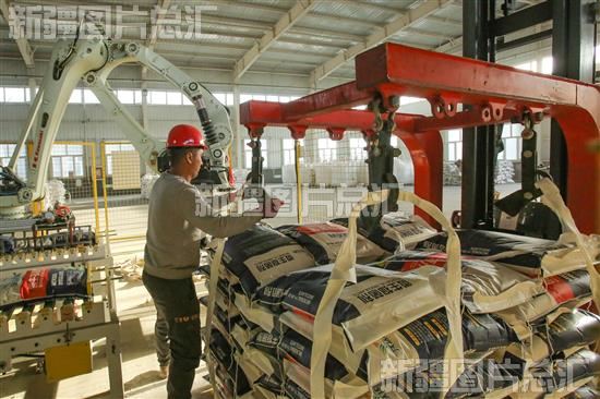 2023年3月5日,工人在新疆黑钥匙酸性肥料有限公司车间准备转运刚下线的产品。