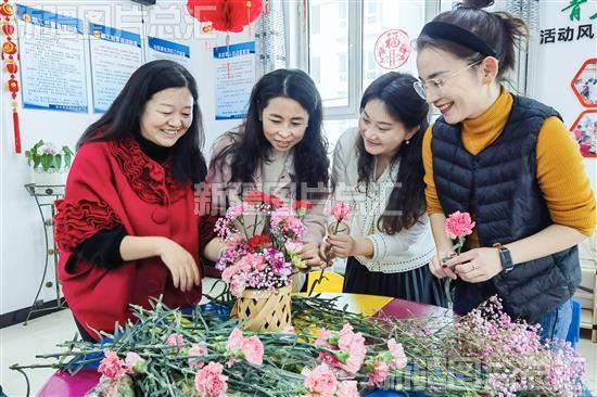 2023年3月6日,社区女同胞正在插花。