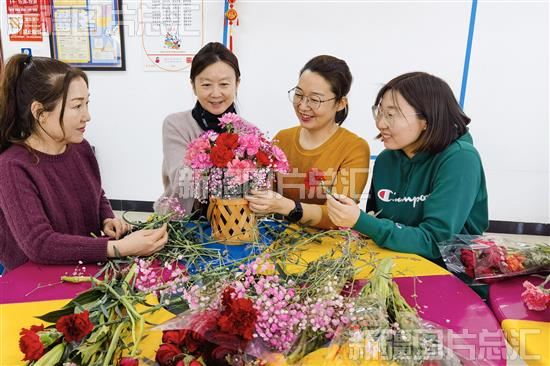 2023年3月6日,社区女同胞正在插花。