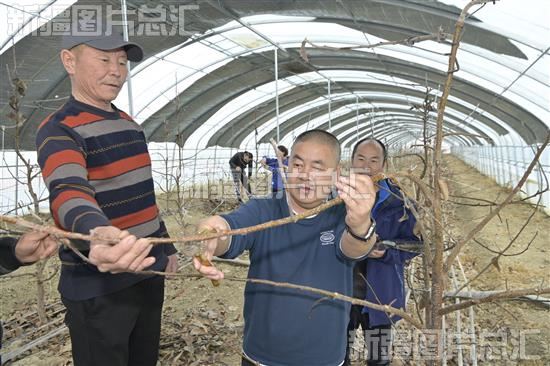 2023年3月13日,和布克赛尔县水利局驻夏孜盖乡巴音托洛盖村“访惠聚”工作队队员在当地“玉露香梨”大棚里培训果农。