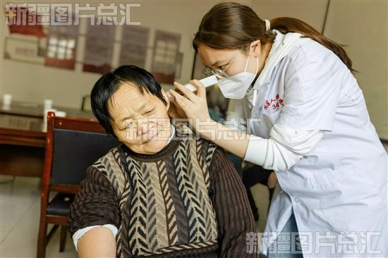 2023年2月28日,乌鲁木齐市水磨沟区华光街街道苇湖庄西社区“访惠聚”工作队队邀请华光街街道社区卫生服务中心医务人员为辖区居民检查耳朵。