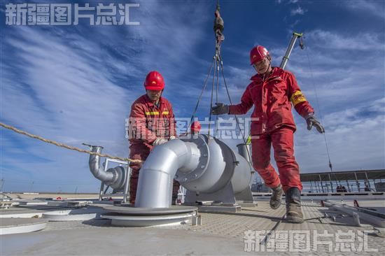 2023年3月9日,玛湖油区金龙2井区JLHW250井钻井设备升级作业现场,西部钻探工程有限公司准东钻井公司70043钻井队队员在安装设备组件。