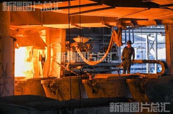关键字:新疆工业能源 准东 开发区 化工 电石 生产车间 出炉 工人 生产 起重机