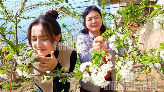 眼下,察布查尔锡伯自治县良繁场蔬果种植大棚里,一簇簇盛开的樱桃花挂满枝头,花香四溢。果农忙着喷肥管护,踏青的游客在赏花拍照游玩,一派春意盎然的美丽景象。 近年来,该良繁场依托光照资源优势,着重打造集观光、采摘、休闲为一体的设施农业产业,促进果农增产增收。目前,该良繁场种植的38座大棚油桃、蟠桃和樱桃等特色早熟果树均已开花。