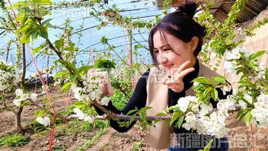 察布查尔:大棚樱桃花开满园