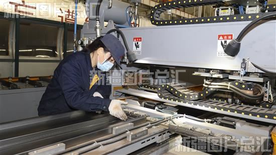 2023年3月9日,新疆天山电梯制造有限公司电梯门板流水线车间,工作人员在生产线上忙碌。