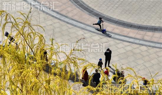 2023年3月24日,市民在库尔勒市人民广场散步游玩。