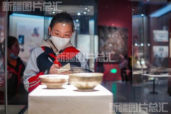 2023年3月24日,同学们在乌鲁木齐市文化中心博物馆参观。
