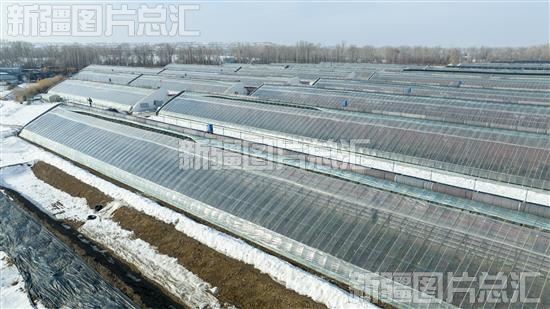 2023年3月7日,俯瞰北屯市一八八团樱桃种植大棚(无人机拍摄)。