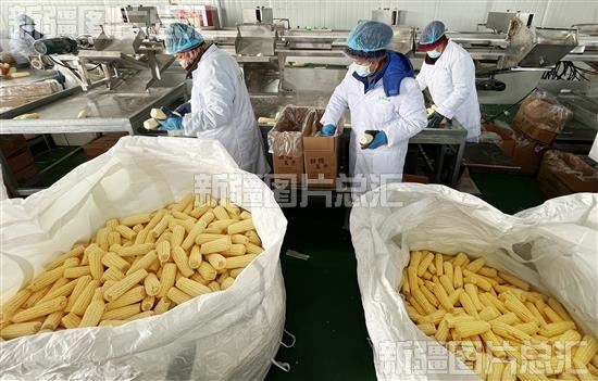 2023年3月8日,工人在位于福海县喀拉玛盖镇的九州农业发展有限公司鲜食玉米生产车间挑选玉米。