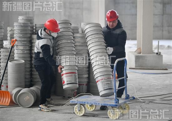 2023年3月2日,工作人员在新疆维吾尔药业有限责任公司年产1亿盒维吾尔药生产基地内搬运物料。