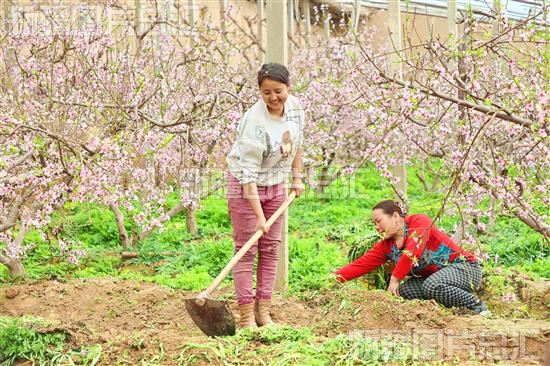 2023年2023年3月10日,库车市比西巴格乡其乃巴格村果农在蜜桃种植基地除草。