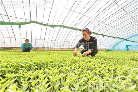 2023年3月9日,库车市比西巴格乡其乃巴格村农户在育苗大棚基地管护秧苗。