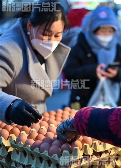 2023年2月2日,市民在新疆库尔勒市友好街道博爱社区“惠居家生鲜便民市场”选购鸡蛋。