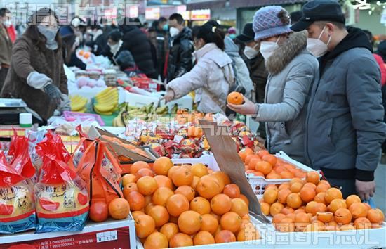 2023年2月2日,市民在新疆库尔勒市友好街道博爱社区“惠居家生鲜便民市场”选购水果。