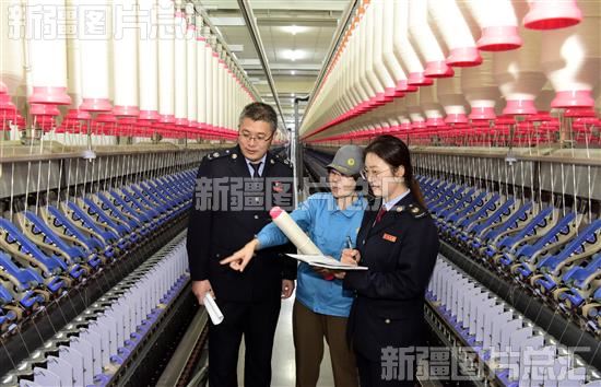 2023年3月24日,国家税务总局库尔勒经济技术开发区税务局工作人员在一家纺织企业了解生产经营情况。
