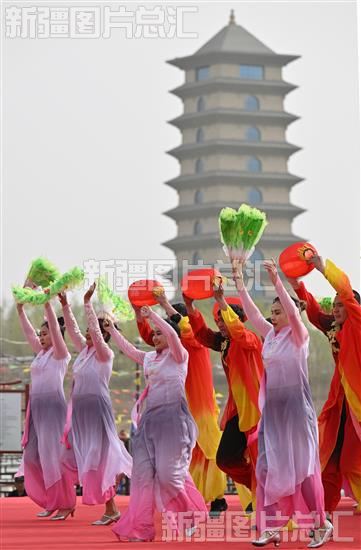 2023年3月28日,参赛队员在库尔勒市鸿雁广场表演广场舞。