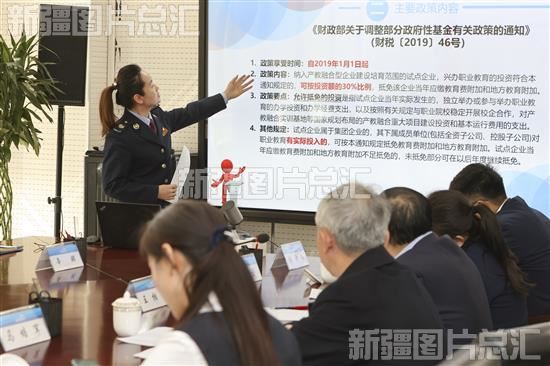 2023年3月28日,税务局工作人员为新疆机场集团相关人员介绍税费优惠政策。