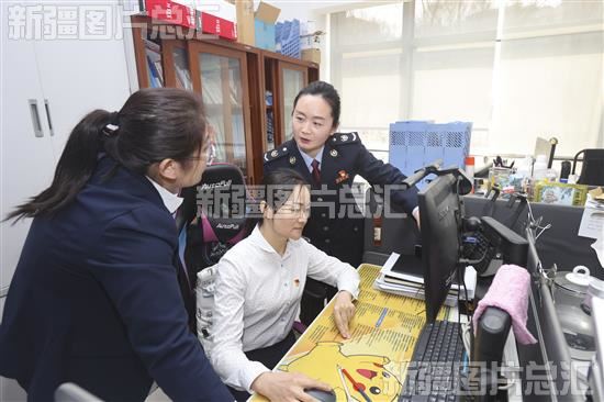 2023年3月28日,税务局工作人员在新疆机场集团财务部,了解企业税费政策实施情况。