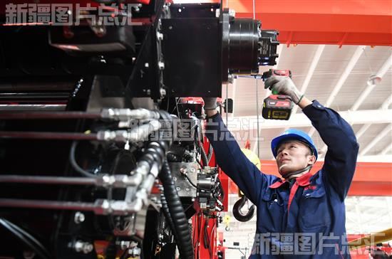 关键字:塔城地区 乌苏市 现代化农机 大型农机 机械 制造 高新技术企业 新疆钵施然智能农机股份有限公司 工人 生产车间 组装 采棉机 精量铺膜 播种机